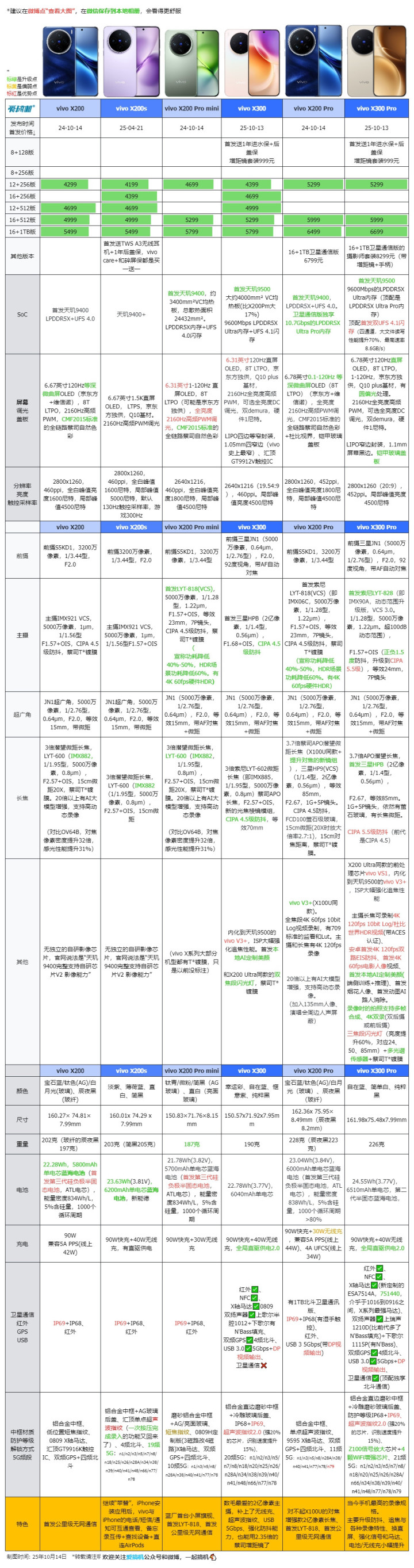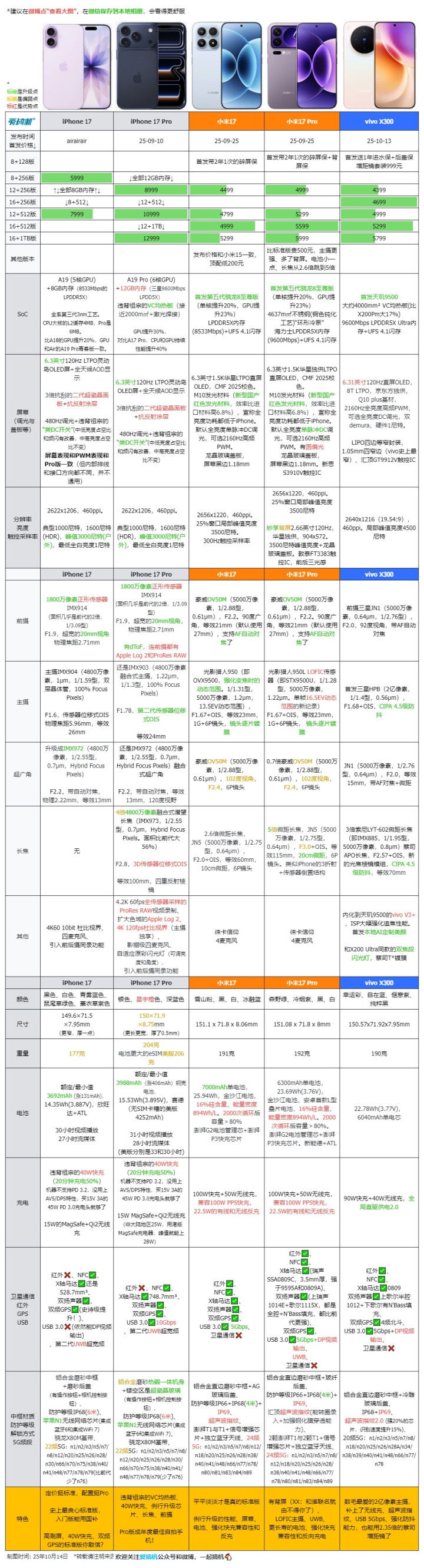 最后例牌,【vivo X300系列】,与小米17系列、iPhone 17系列、vivo X200系列对比↓